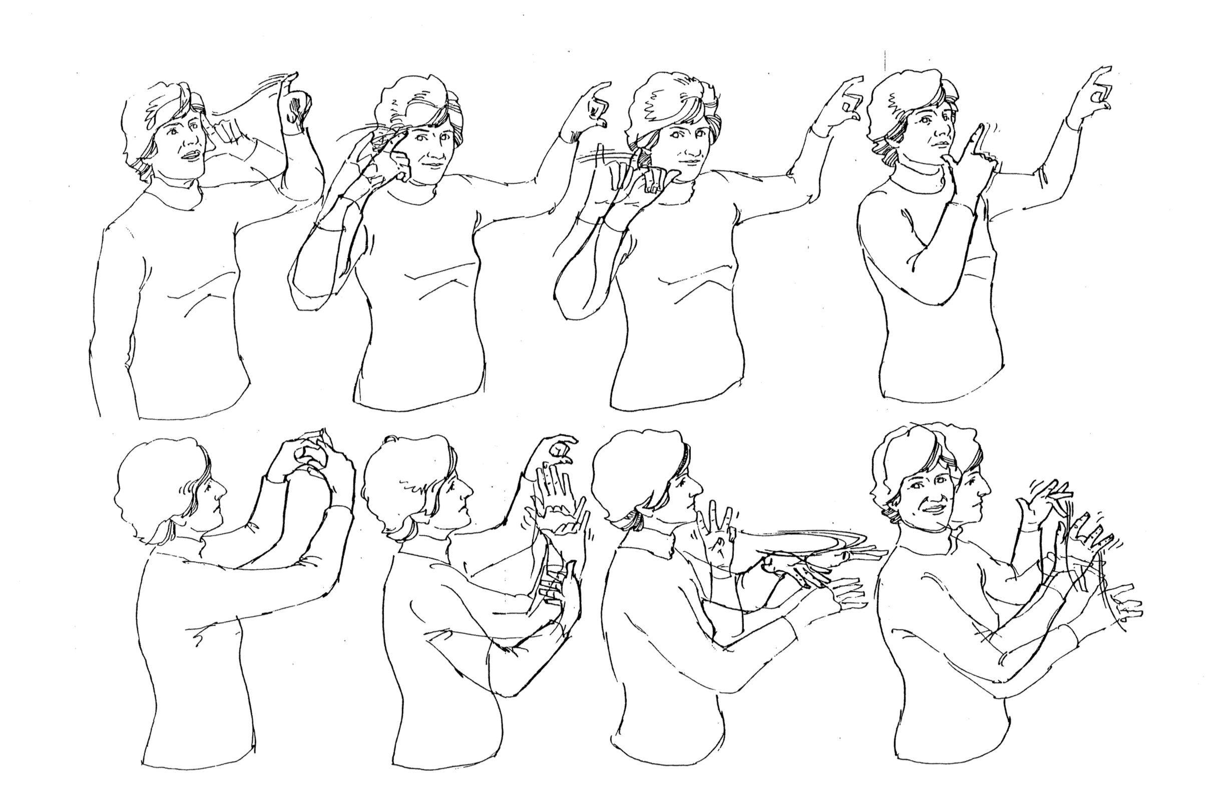 Artist Frank Allen Paul, a well-known illustrator of sign language, captured the exact handshapes, movement, and expression Dot used. His artwork freezes a moment of signed poetry and turns it into visual art that we can study and appreciate.
